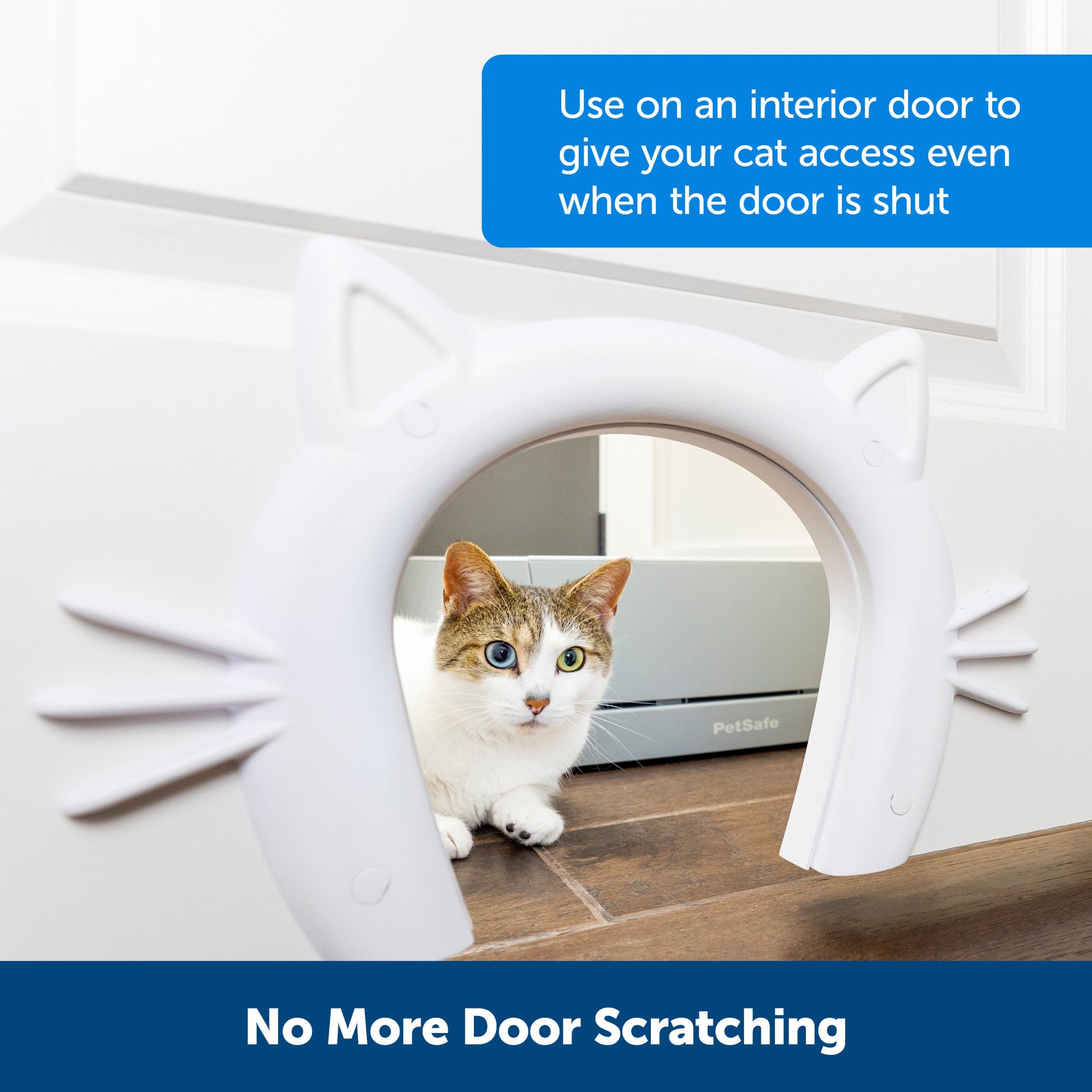 Your cat is the real V.I.P (very important pet). Give your furry friend her own private access with the PetSafe® Cat Corridor™ Interior Pet Door. With the Cat Corridor™ the door is always open! Secure this pet door to any interior door in your home to give your cat access to any room. This corridor allows you to keep the litter box hidden behind closed doors and keep your dog from sneakily eating the cat food. The cute, cat-shaped design of the door adds a playful and decorative touch in your home. The pet door comes in a white finish, and the surface is paintable, so you can easily customize the door to match your home décor. The Cat Corridor™ is easy to install, simply use the provided cutting template to ensure the pet door fits properly and secure the door in place with the included screws. The screws will keep the door securely in place every time your cat enters and exits the room. This cat door is best for kitties who weigh up to 20 pounds. Your pet deserves the best. Trust PetSafe® to help keep your pet healthy, safe and happy.