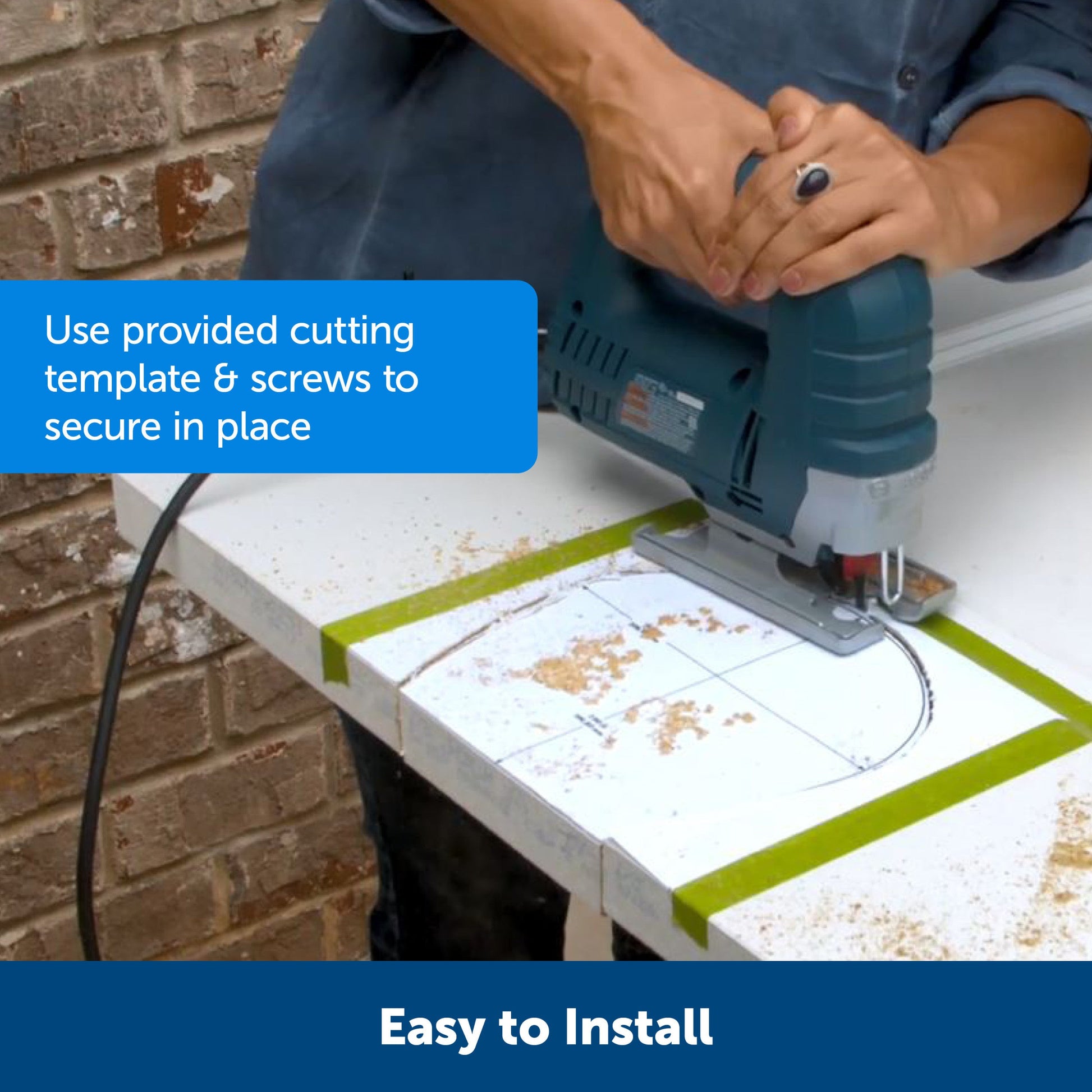 - Includes a cutting template and screws