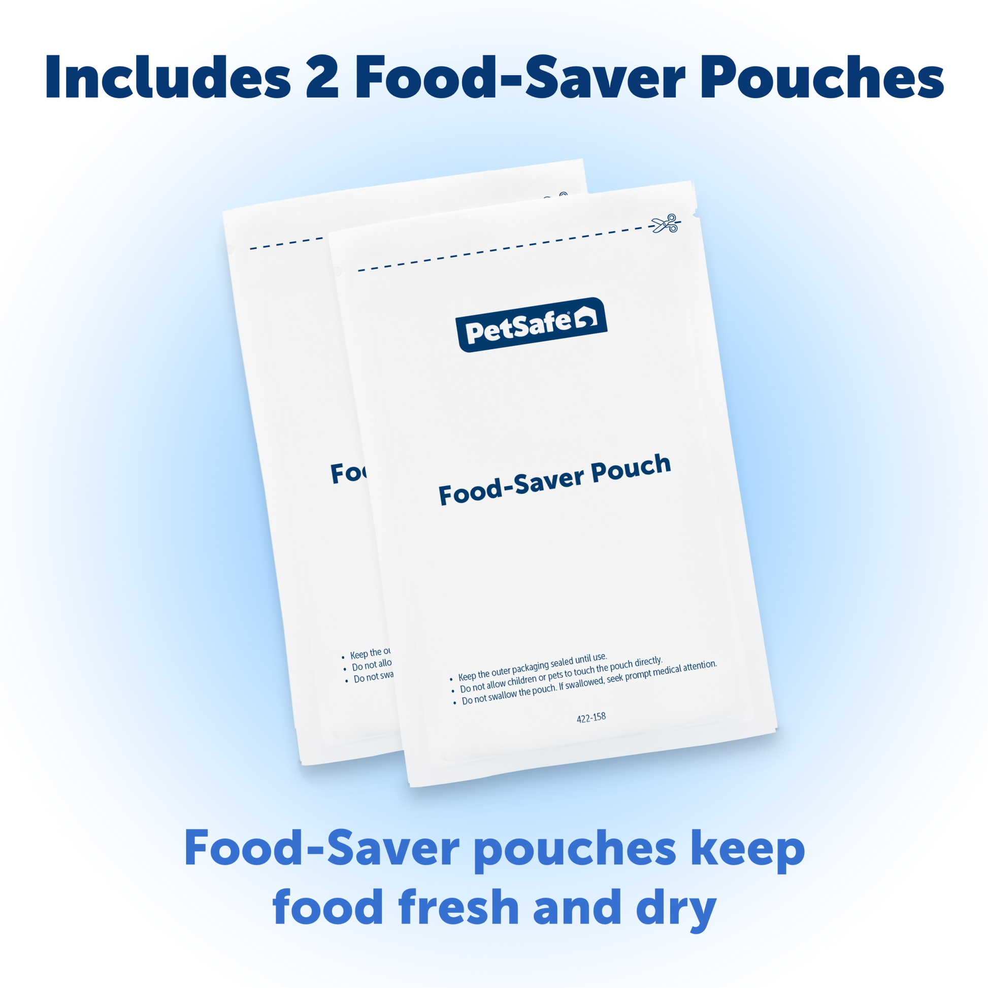 - Secure, airtight lid and included food-saver pouches keep dog or cat food tasting fresh