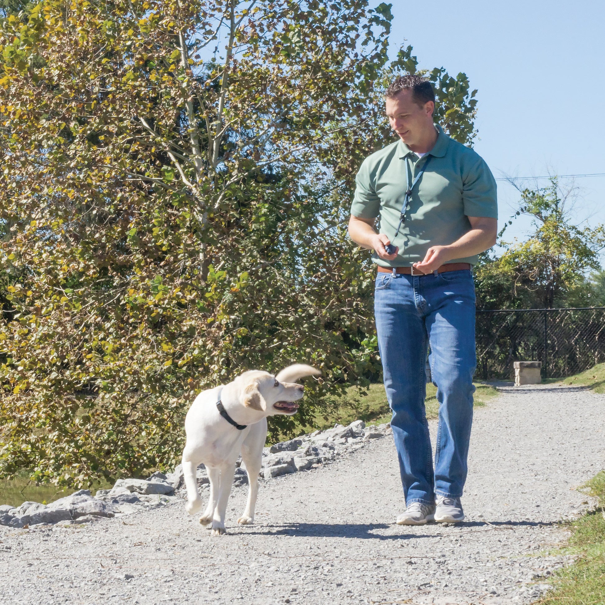 Keep the remote for your dog’s training collar close for when you’re out for a walk or at the dog park with the Remote Trainer Lanyard. Quickly secure your remote to the lanyard and wear it around your neck without carrying it around in your pocket or purse. This lanyard works with all PetSafe® remote trainers. Your dog deserves the best. Trust PetSafe® to help keep your pet healthy, safe and happy.