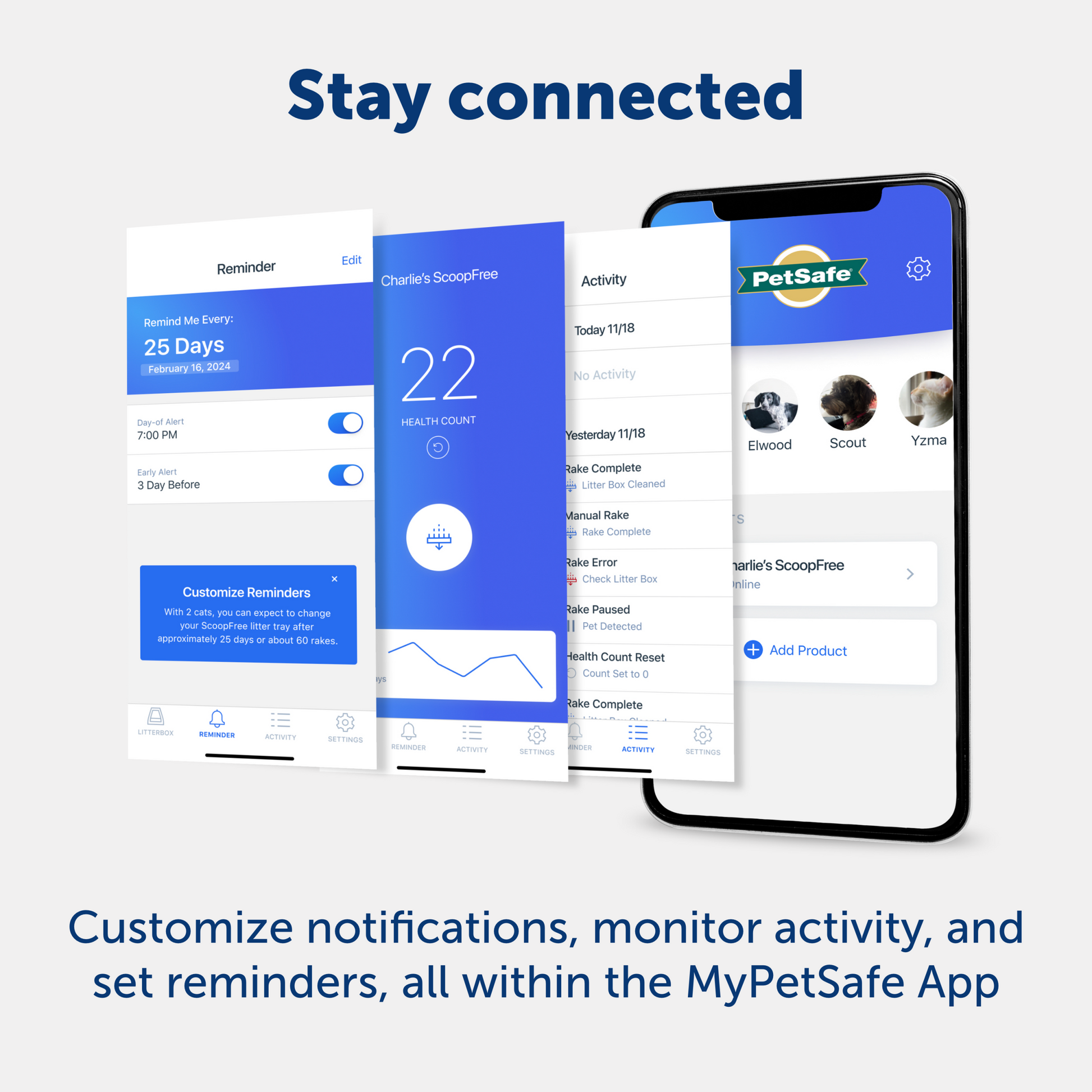 Stay connected with your pet through the My PetSafe app, enabling you to supervise your cat's health remotely, even while you're away from home. This feature provides real-time insights into your cat’s litter box usage, sending alerts for unusual activity.