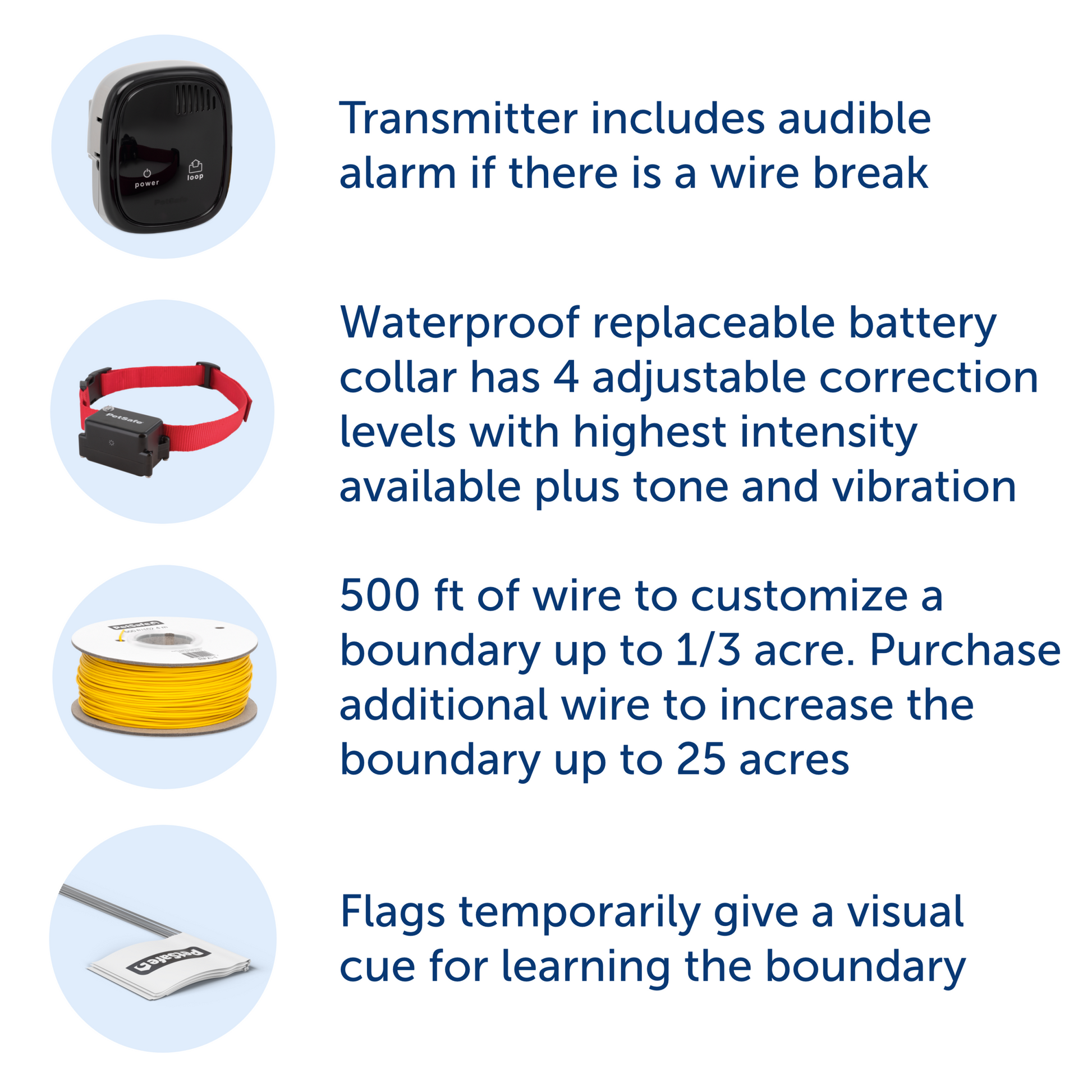 • Cover up to a 1/3-acre yard with included 500 ft of wire
